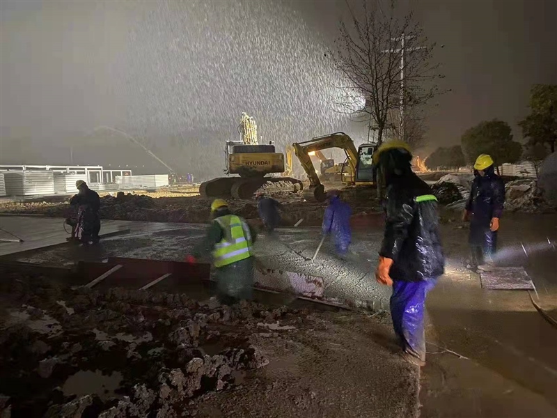 截止1月29日18:00,現(xiàn)場已完成準(zhǔn)備區(qū)所有混凝土澆筑,雨污水管道、室外水電管道施工完成,地坪及道路基本結(jié)束。自1月28日暴雪來襲,施工環(huán)境惡劣,一線人員不畏嚴(yán)寒,連夜雪中奮戰(zhàn),集團(tuán)公司黨員突擊隊(duì)、志愿服務(wù)隊(duì)出動(dòng)搬運(yùn)物資、修補(bǔ)設(shè)施等,以飽滿熱情和堅(jiān)決態(tài)度克服各種困難和障礙,充分展現(xiàn)了“國企加速度”。